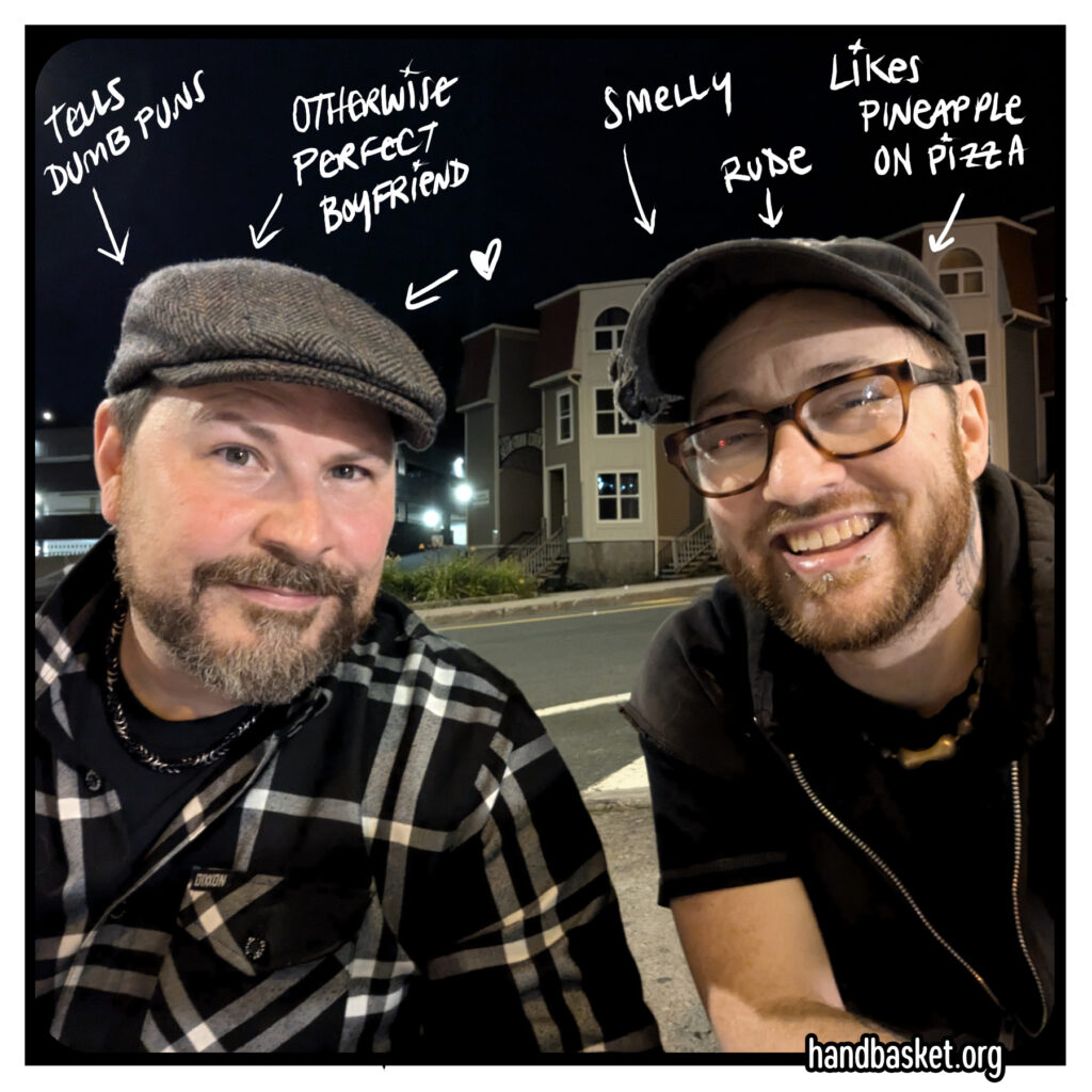 I’ve been in a committed relationship with the dude on the left for 24 years, but everyone thinks we’re brothers because we joke-punch each other in public more often than we smooch.